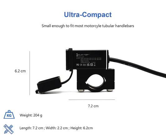 Handlebar Mounted 36W USB Type-C + QC 3.0 Plastic Adapter - Cliff Top