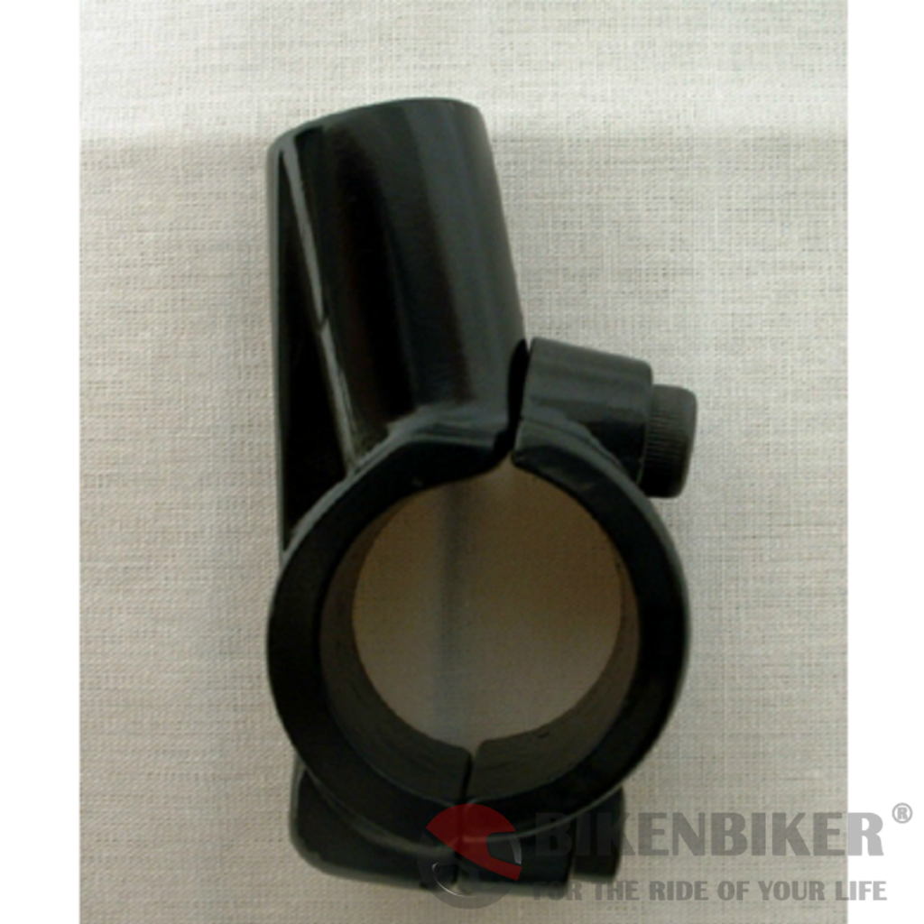 - It clamps around the handlebars and has a 10mm tapped hole for the mirror to screw into.