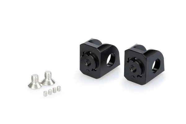 Adaptors machined from a high-performance Ergal 7075 aluminum block and black anodized. They are the perfect transmission to connect our footpegs with the original motorcycle supports.