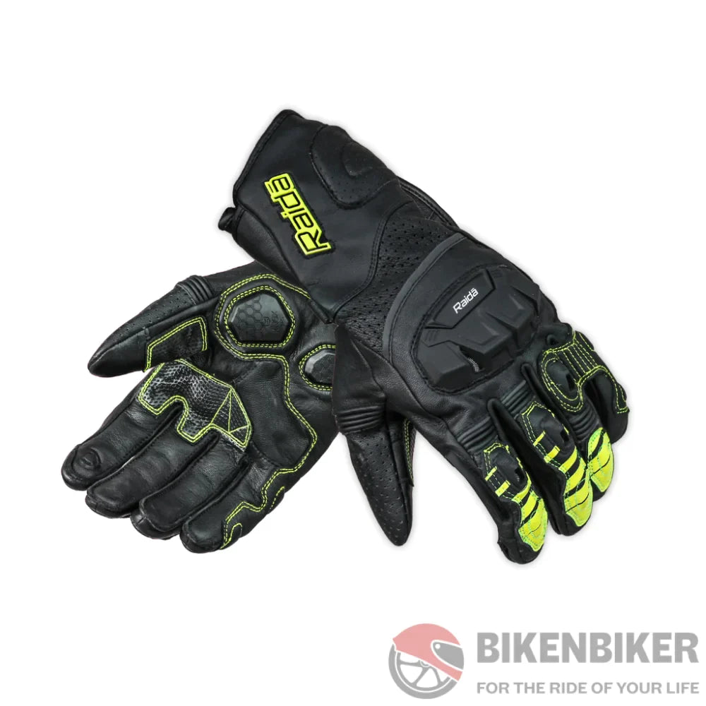 Raida® Aeroprix is a full gauntlet riding glove that features Vented TPR Knuckle & Finger Protector specially designed for Everyday ride. In addition to CE Certified Impacton® Visco Elastan Foam at the wrist, It also comes with Knox® Palm Sliders for added safety. Inspired by the track, Raida® Aeroprix Gloves are tailored for Any & Every Day Ride.