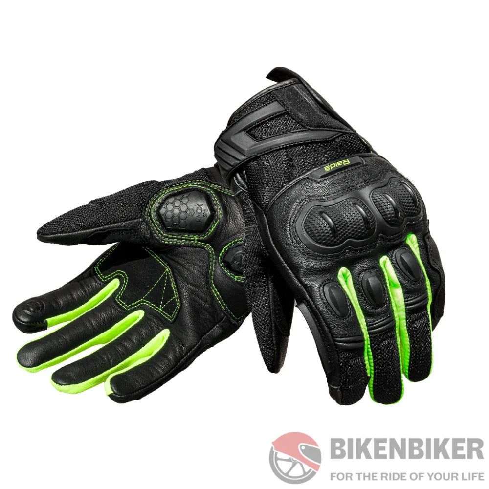 Keep it lightweight, gripping, and breezy with Raida AirWave Motorcycle Gloves. Featuring top-class perforated mesh lining and superior-end KNOX patented Sports SPS system, these gloves are meant to take you swooning on your bike without worrying about sweating and gripping. The TRP Strap is adjustable, so you can attain the perfect fitting for upholding maximum grip on the bike. On top of that, the Raida AirWave Motorcycle Gloves are made from premium leather.