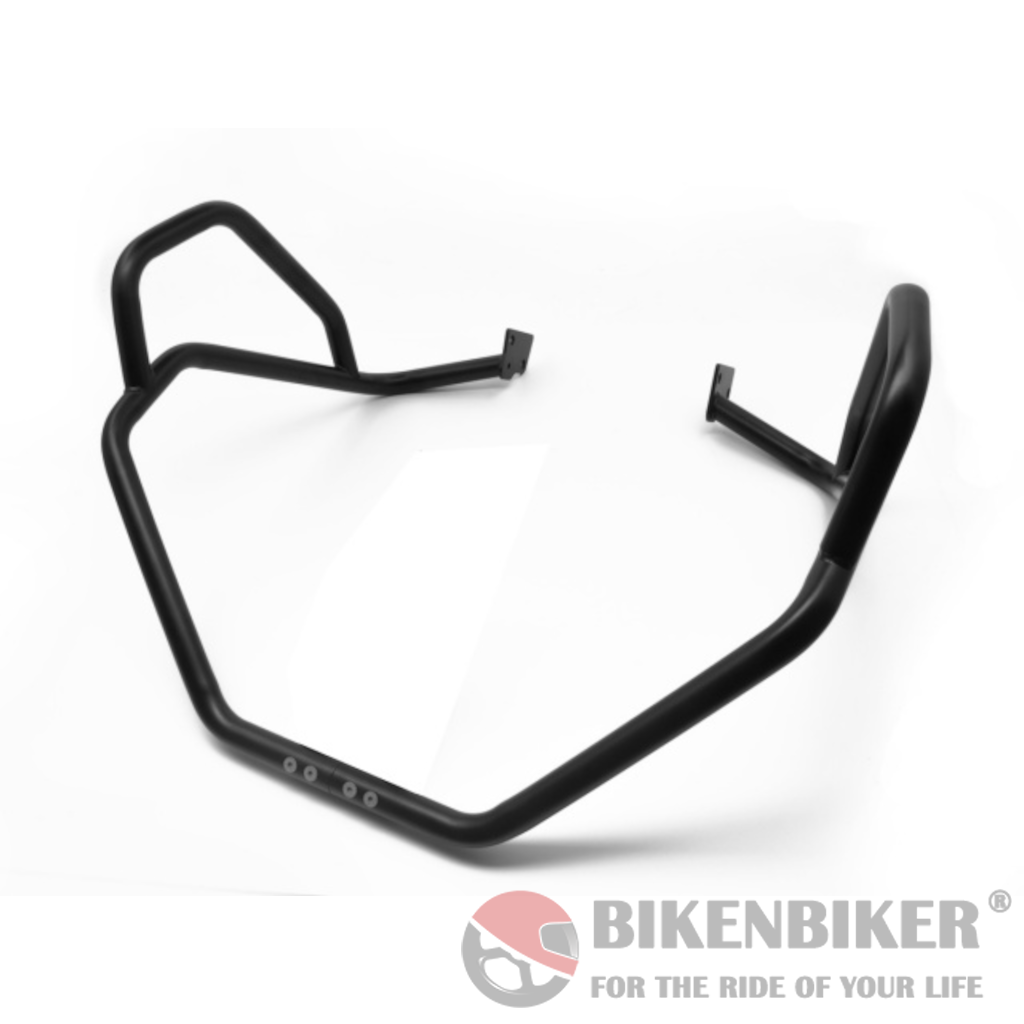 The Upper Crash Bars provide complete coverage for the bike’s vulnerable radiator and expensive plastic fairings. The 1 inch (25.4 mm) diameter stainless steel tubing is hand-TIG welded in the USA and mounts directly to frame rather than the engine case.