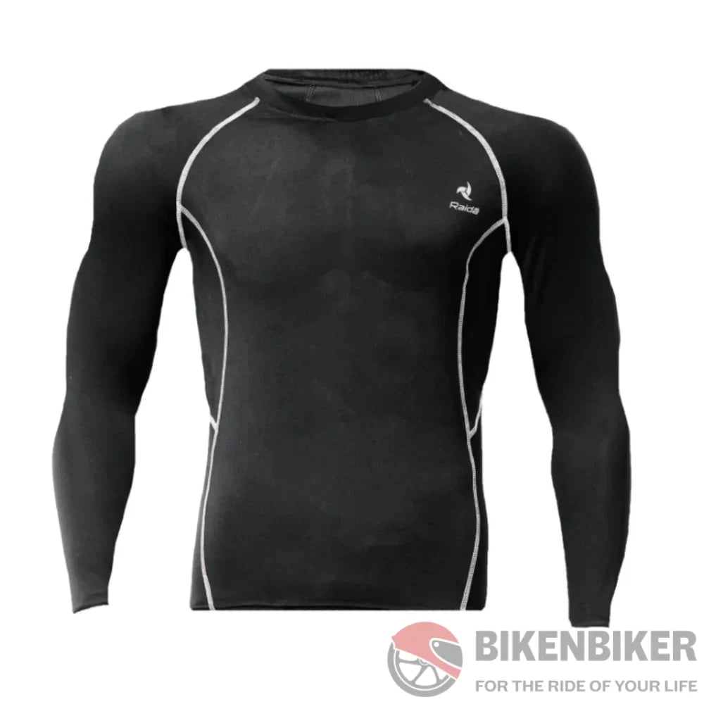 Raida® Base layers are a tight-fitting layer of clothing to be worn beneath your riding jacket and Pants. It is Made of a specific Polyester/Spandex material which helps to absorb sweat & Moisture from the body keeping your skin dry which helps to maintain your body temperature throughout the ride.