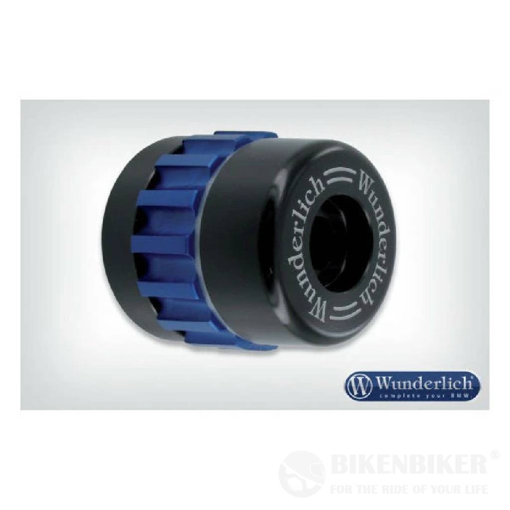 The entire adjustment mechanism is housed in the right handlebar end weight and increases the lateral pressure on the gas handle in accordance with its setting.