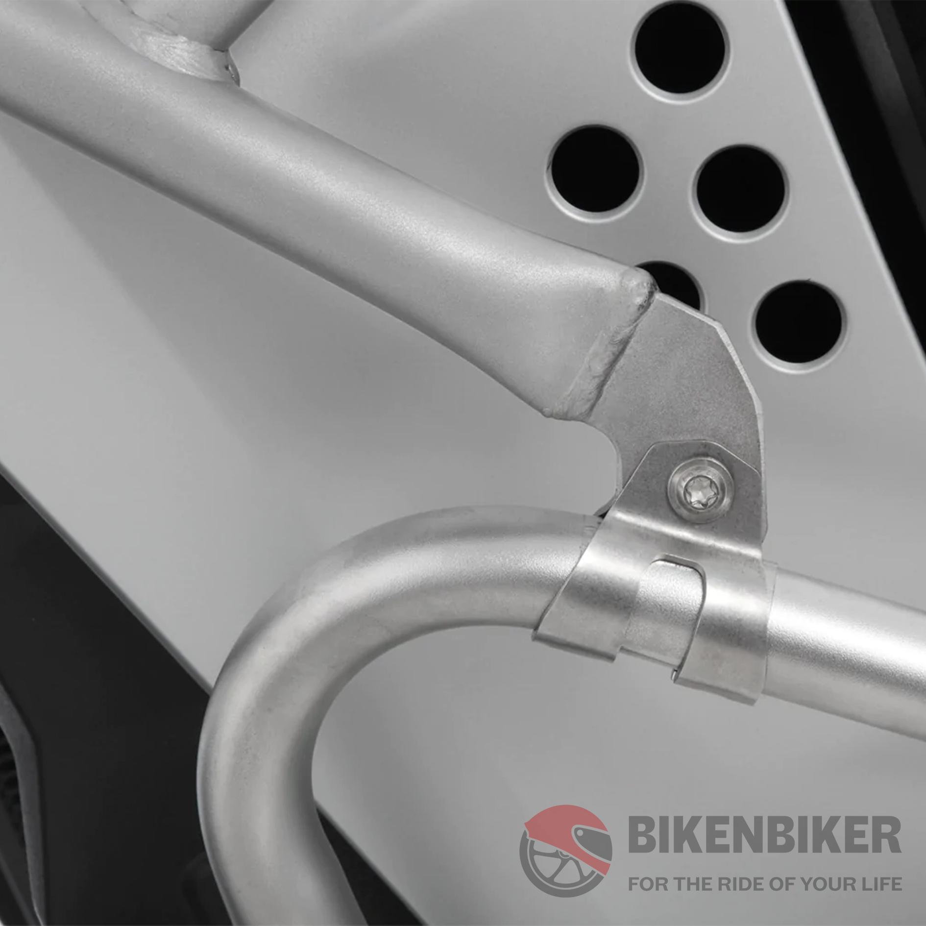 This tank protection bar in combination with the engine protection bar protects reliably the fairing of the F 850 GS Adventure against damage. Due to the high intake, the motorcycle will not tip over in the event of a fall. This also prevents from further damage on the stem. The tank protection bar perfectly underlines the optics and design of the 850. The driver's freedom of movement is not affected.