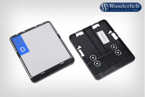 To fit the number plate without holes or ugly screws - once installed, the number plate holder will hold the sign without any screws. This prevents not only ugly screw heads or caps, the number plate will be reinforced and won't crack any longer. The number plate is held safely with several clamps, so a loss is impossible. With Wunderlich signature and logo.
