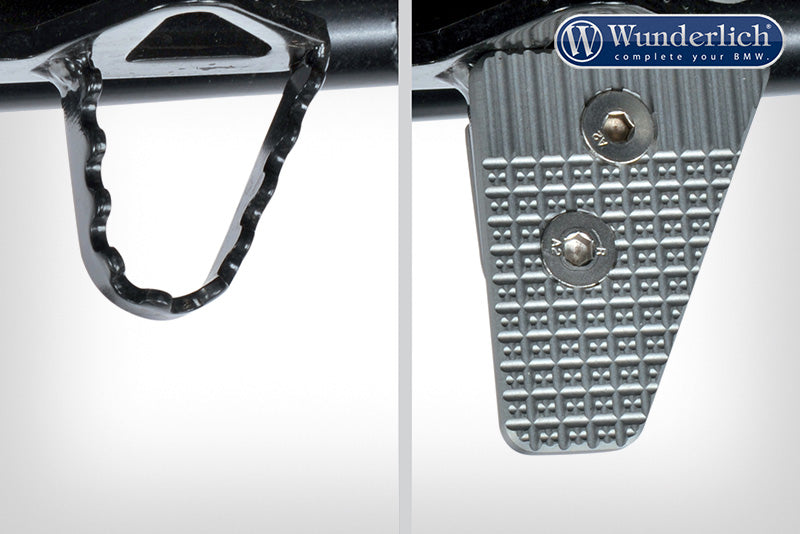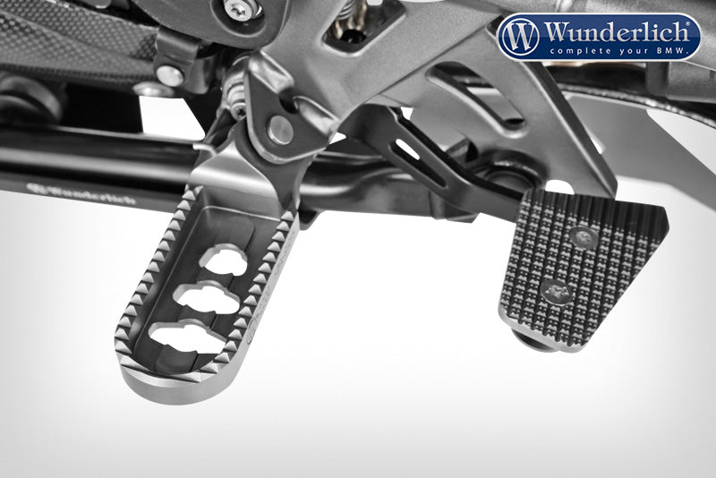 The brake pedal can now be adjusted to every shoe size or habit. Furthermore you can brake the GS much more comfortably and safely thanks to the spikes and to the foot brake lever on roller bearings.