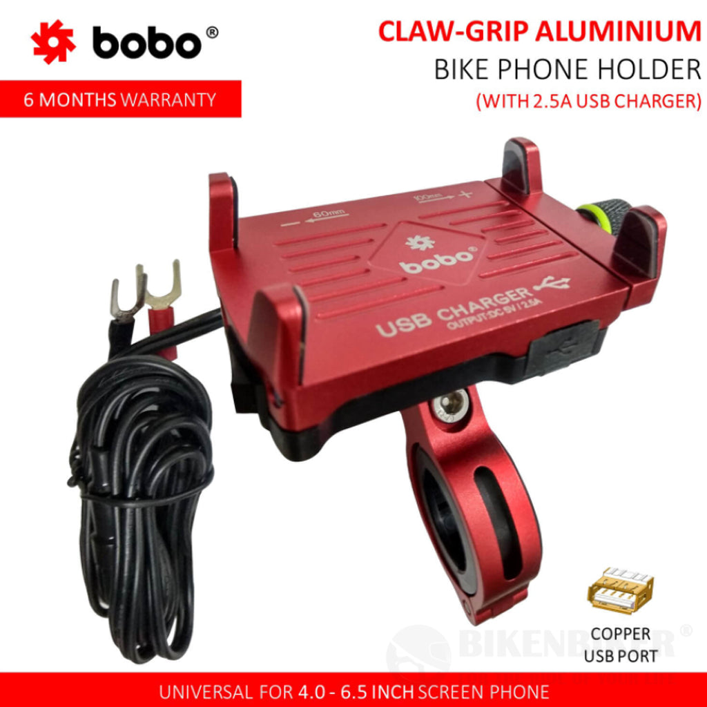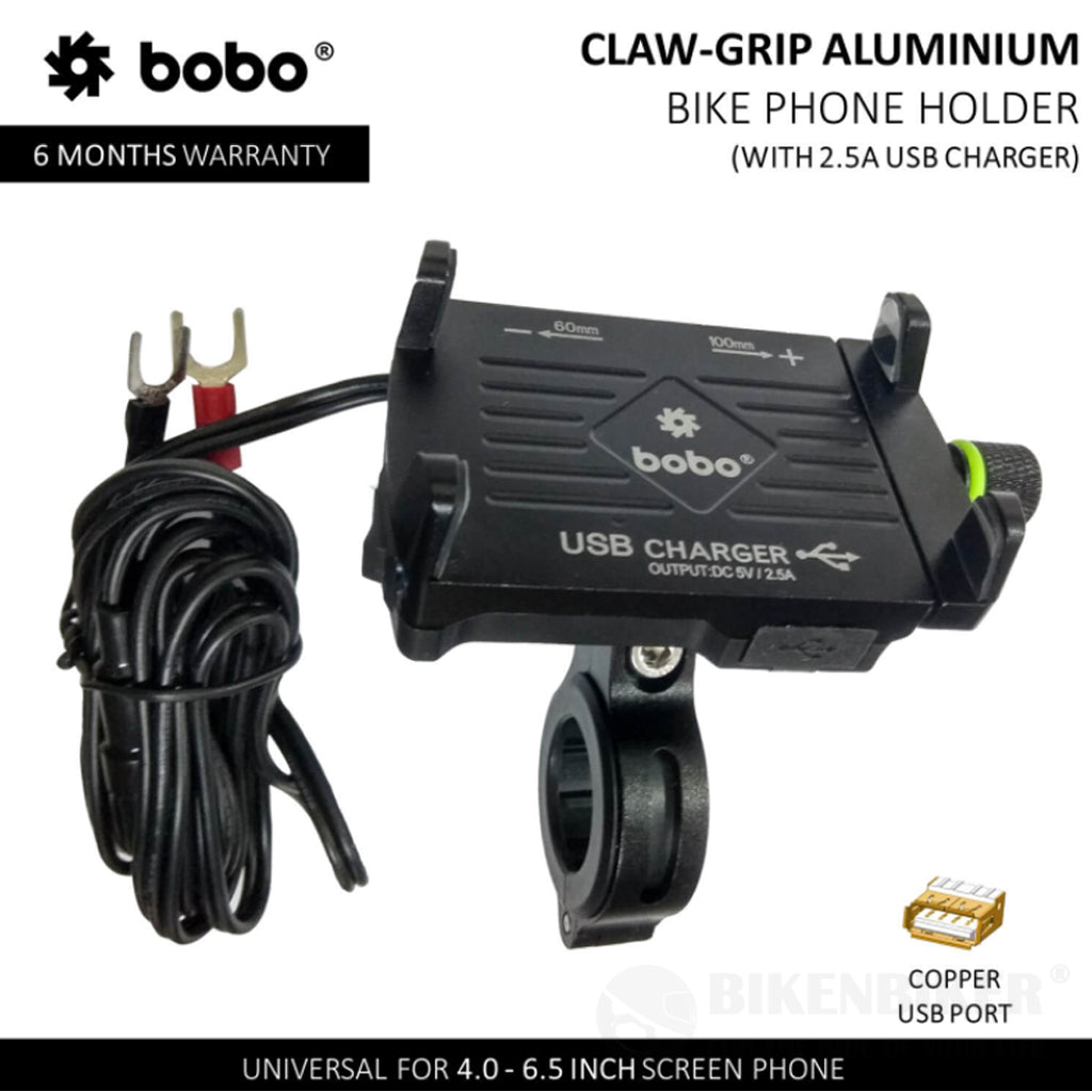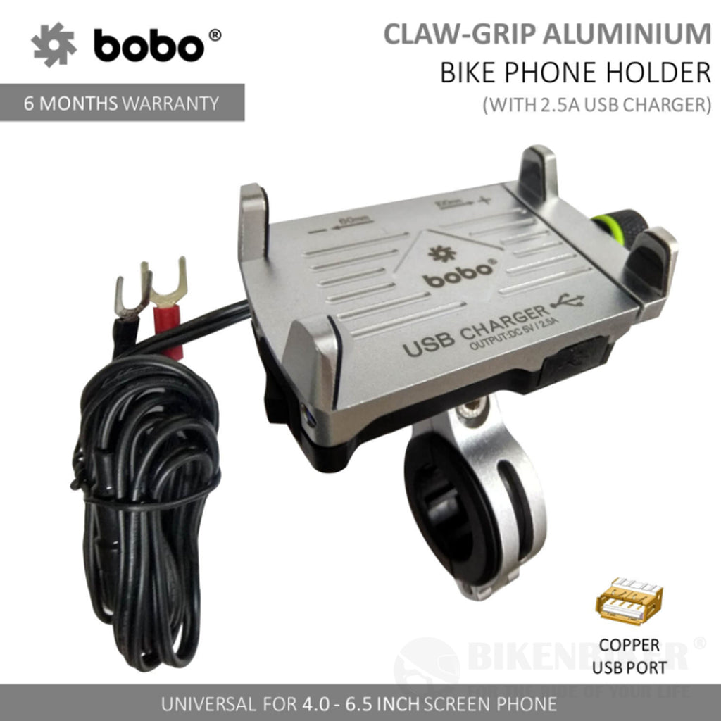 Claw-Grip Aluminium (with 2.5A USB charger) Bike / Cycle Phone Holder Motorcycle Mobile Mount - Bobo