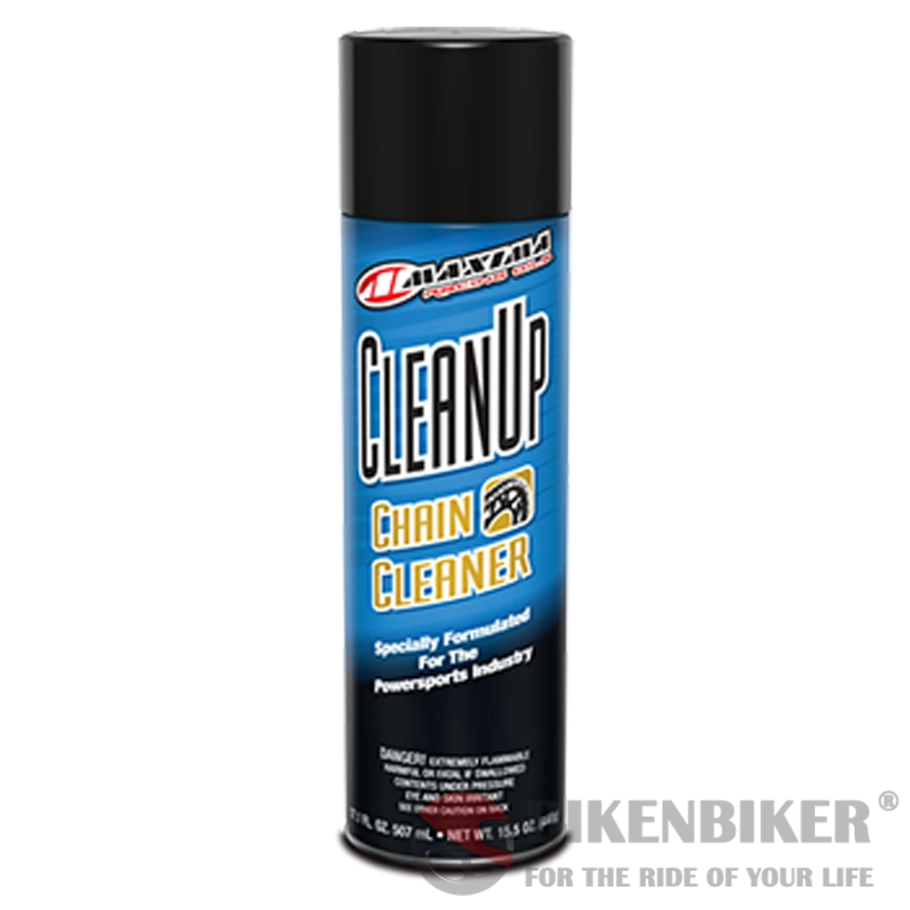 CLEAN UP is a heavy duty, emulsion type cleaner designed to thoroughly clean chains without harming rubber o-rings or metal surfaces. Quickly dissolves and removes left on chain lube, dirt, sand, mud and other grime. Doesn’t harm the finish on gold chains, standard chains, aluminium or steel. Safe for O, X and Z-ring chains. Easy spray on rinse off application.