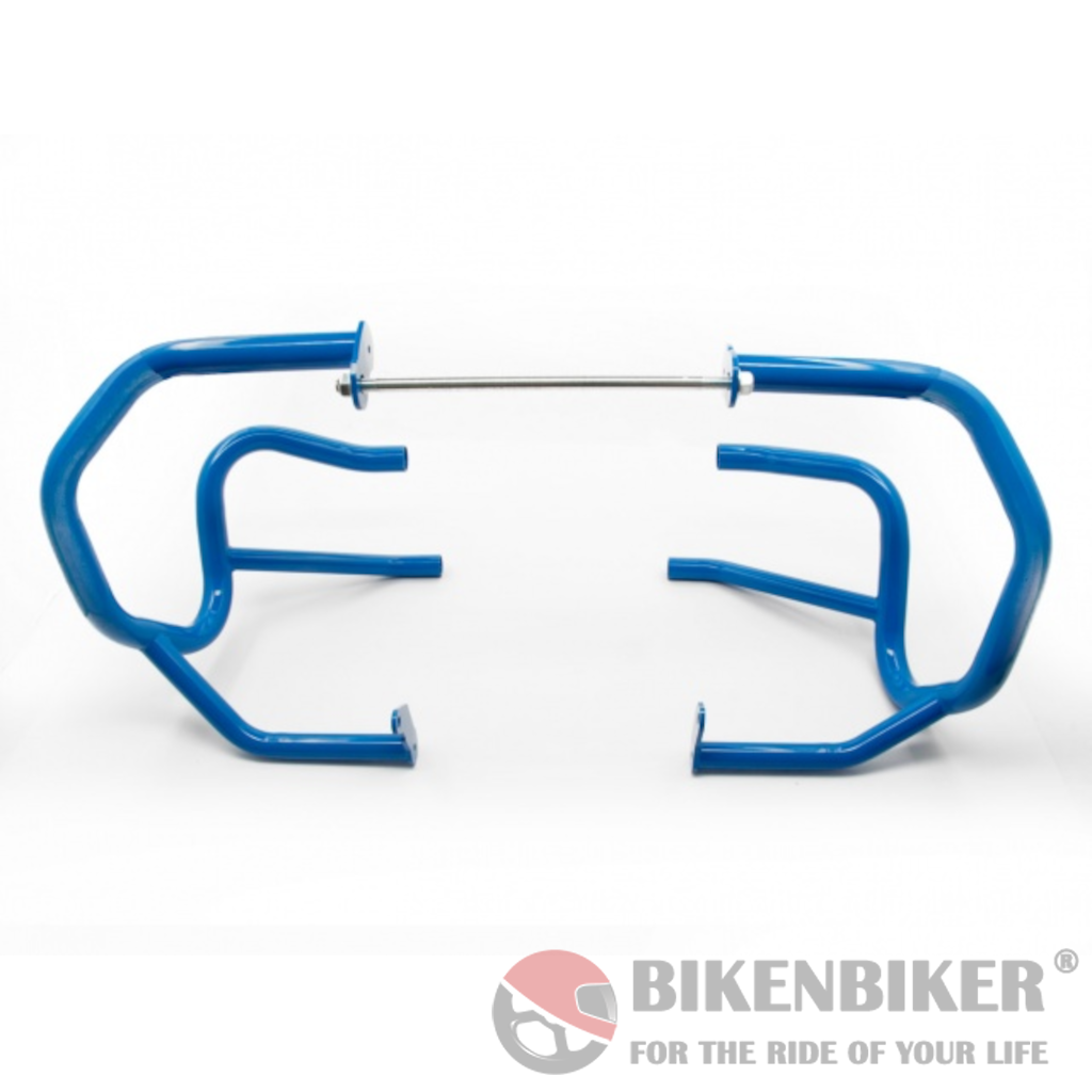 TThe R 1200 GS has been updated with the new R 1250 GS, and a new bike requires new protection, so AltRider has updated the crash bars for the new R 1250 GS models. The crash bars utilize 1.25 inch (31.75 mm) O.D. stainless steel tubing making them the largest diameter bars on the market. The decision to increase the diameter came from years of research and production results. The West Coast BMW Off-Road Training School has been outfitting their bikes with AltRider gear for the past three years. This real world testing yielded much insight on how much damage large bikes can do during crashes. 1 inch bars (25.4 mm) allow a significant amount of flex during a crash, creating the need to space them farther from the bike. The stout 1.25 inch (31.75 mm) bars allow a tighter profile while still providing real protection. Available in a bead-blasted stainless silver, or black, triple black (grey), red, white or blue powder coat finish, they're extremely resistant to rust whether you’re riding the liquid cooled GS across the highway or across a river.
