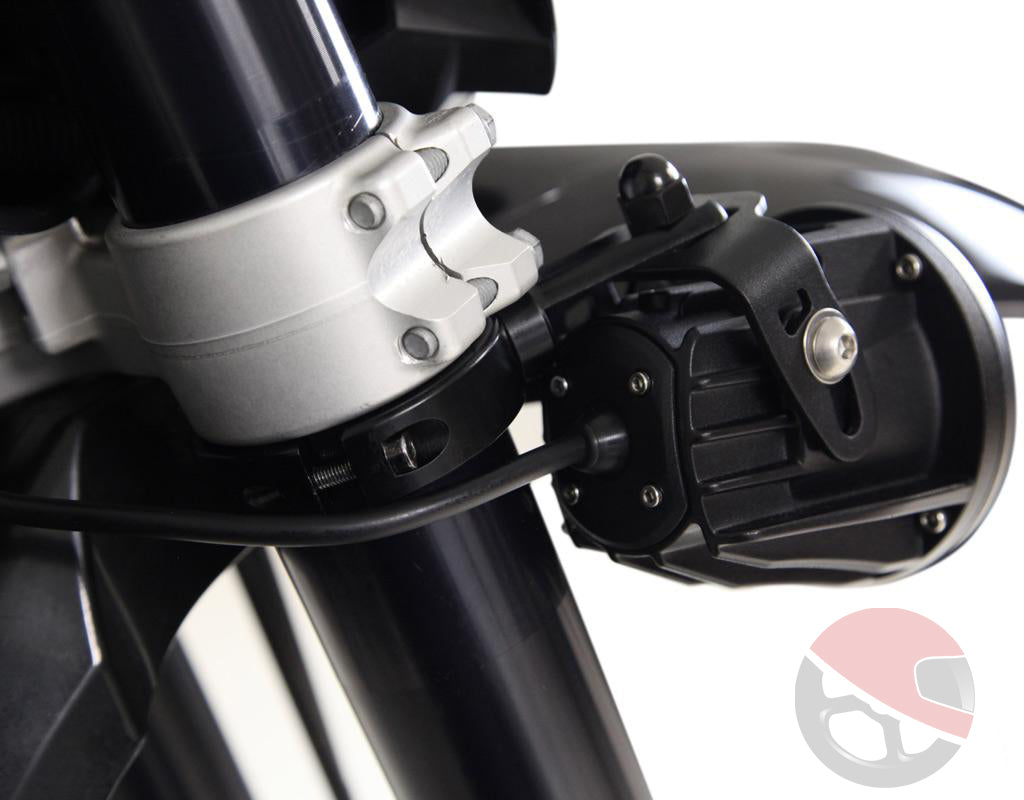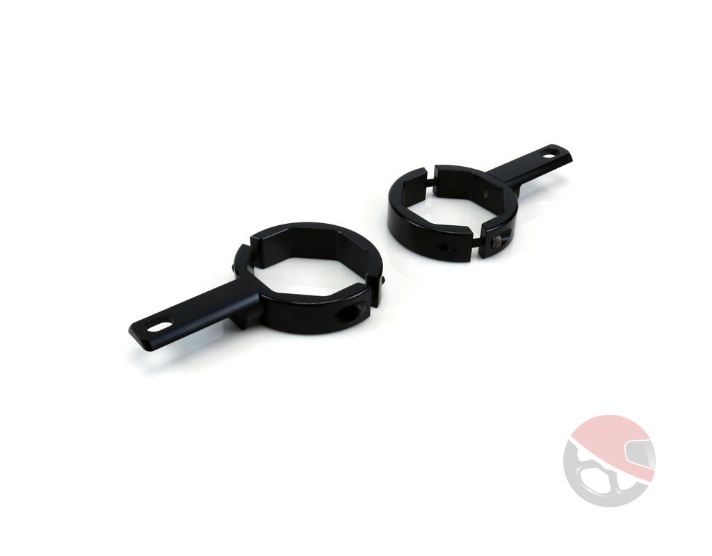 These clamps are intended for motorcycles with exposed inverted forks such as enduro, dual sport, and naked motorcycles. The clamps allow lights to be mounted in front of, or to each side of the fork tubes to ensure clearance with fairings and other accessories. The clamps are also perfectly sized to clamp to the lower legs of conventional forks, typically found on many cruiser and standard motorcycles.