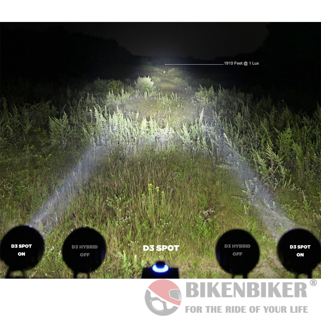 Denali’s new D3 LED lights are built upon a decade of Denali innovation to deliver the highest performing 36-watt street-legal driving light to hit the market. Denali’s D3 driving light features their signature TriOptic™ beam system that includes a spot and hybrid driving lens with each light pod, so you can run a full spot beam, a full hybrid driving beam, or one of each to create a spot/hybrid combo. The hybrid lens option is both SAE and ECE certified to deliver an impressive street-legal high beam in North America and European Union countries while the maxed-out spot lens is only ECE certified because it is too bright to pass SAE regulations. But what if you’re not concerned with street-legal precision and just want off-road outrageous? We got you covered too! The D3 spot lens was engineered for maximum beam distance measuring over 1900 feet at 1 lux (per pair). No other 36-watt light even comes close. The spot beam is so impressive it actually outperforms top-tier competitors’ lights that are twice its size.