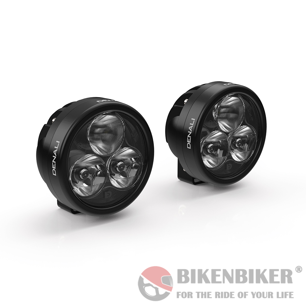 The D3 housing is only 90mm round and 66mm deep. A pair of D3s feature High-Intensity Series Cree LEDs outputting 4200 lumens. The DataDim™ 3-wire smart-dimming technology is compatible with all Denali dimming controllers. All Denali housings are IP67 waterproof & submersible, making sure you’re ready for any adventure that comes your way! These DrySeal™ Submersible Waterproof lights can withstand the most extreme environments. The Impact PC™ Polycarbonate bezels won’t crack, fade or corrode like traditional aluminum bezels. The Impact PC™ corrosion proof bezel ensures your lights will continue to look great even after repeated stone and debris impacts. LiveActive™ Thermal Management keeps the LEDs cool preventing the loss of light output from overheating. Low profile mounting brackets with stainless steel hardware included. Additional SAE/DOT & ECE certified hybrid driving lens included (spot lens installed).