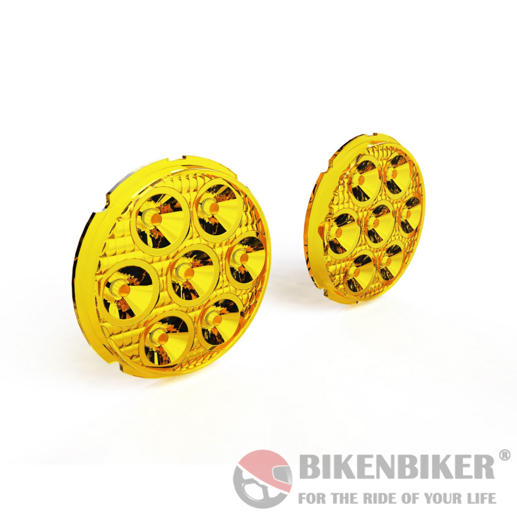 The Denali TriOptic ‘Selective Yellow’ lens kit for D7 lights are designed to maximize visibility in foggy and rainy conditions. The Selective Yellow color of the lens increases visibility in fog and rain by blocking blue frequencies which reflect off water vapor and decrease vision. This Selective Yellow lens kit also provides for even more daytime visibility to oncoming traffic.