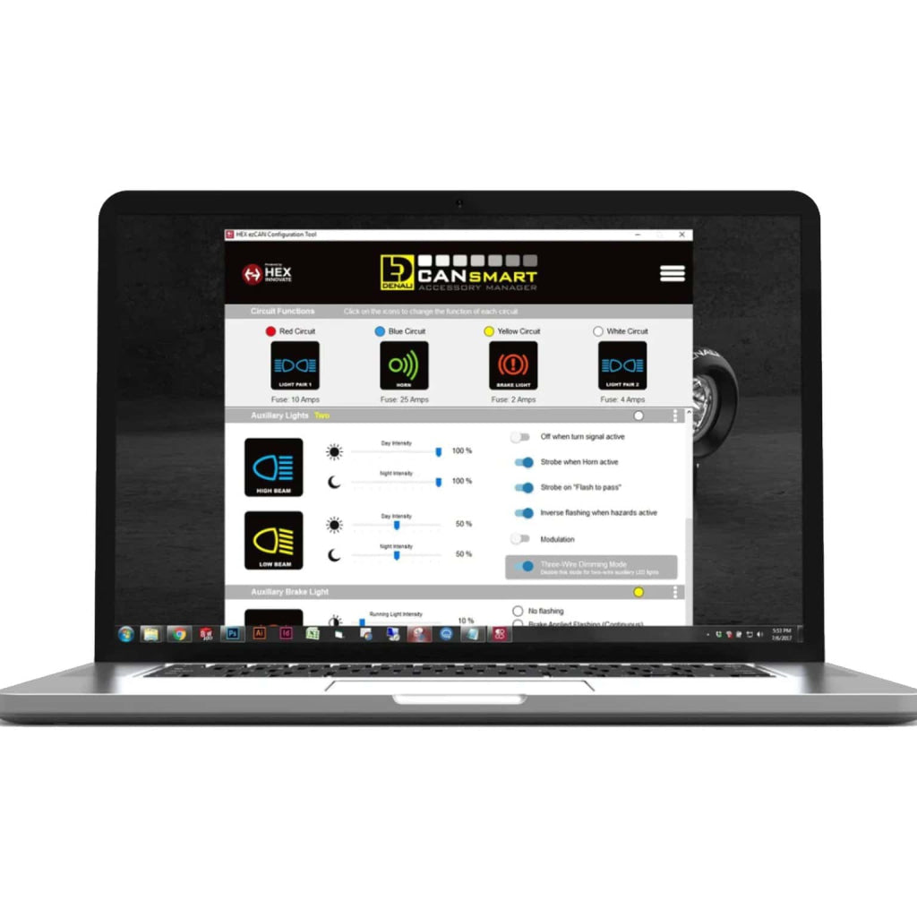 The CANsmart’s four circuits are preprogrammed to connect and independently control two sets of DENALI 2.0 lights, a SoundBomb horn, and our B6 auxiliary brake light.