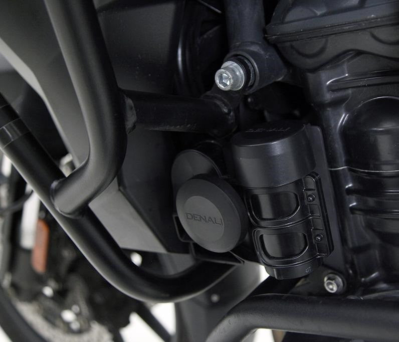 Producing an earsplitting 120 decibels of sound, the SoundBomb is 4 times louder than a standard motorcycle horn! The Denali™ SoundBomb was designed for those who want to be heard, but still want to maintain a stylish look. Thanks to its compact design and blacked-out housing, the SoundBomb will practically disappear once installed.
