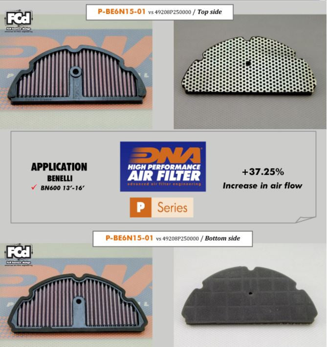 - The flow of this DNA filter is +37.25% more than the BENELLI stock foam filter!