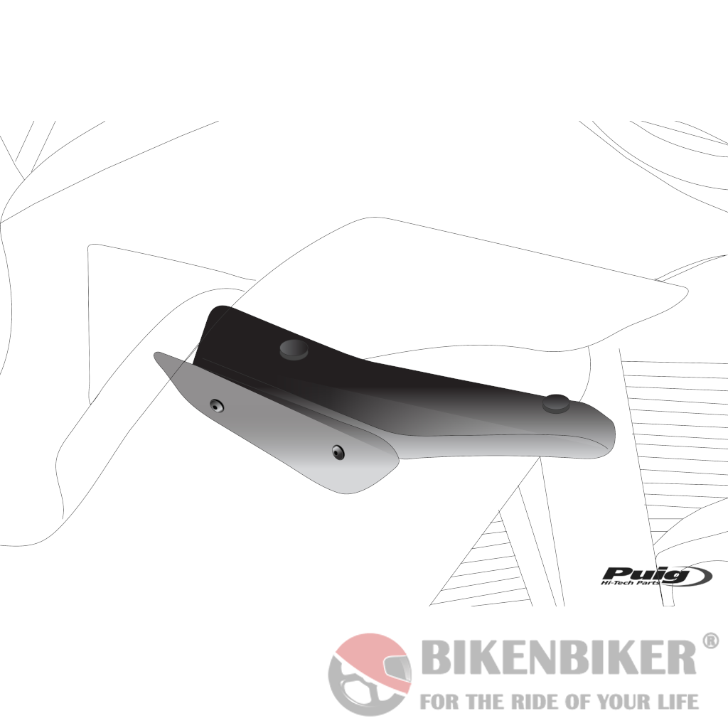 Now you can benefit from the racing aerodynamic technology in your motorcycle. Puig Downforce Sport spoilers have been developed thanks to the experience and tests carried out by the Kawasaki Racing team on the WorldSBK championship circuits. Get the ultimate racing touch and improve the cornering of your motorcycle with these Sport spoilers.