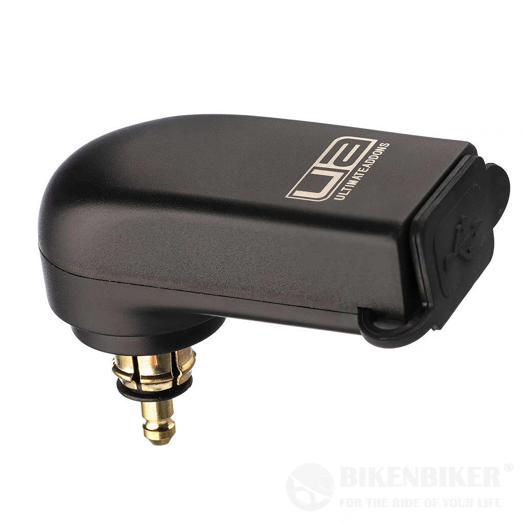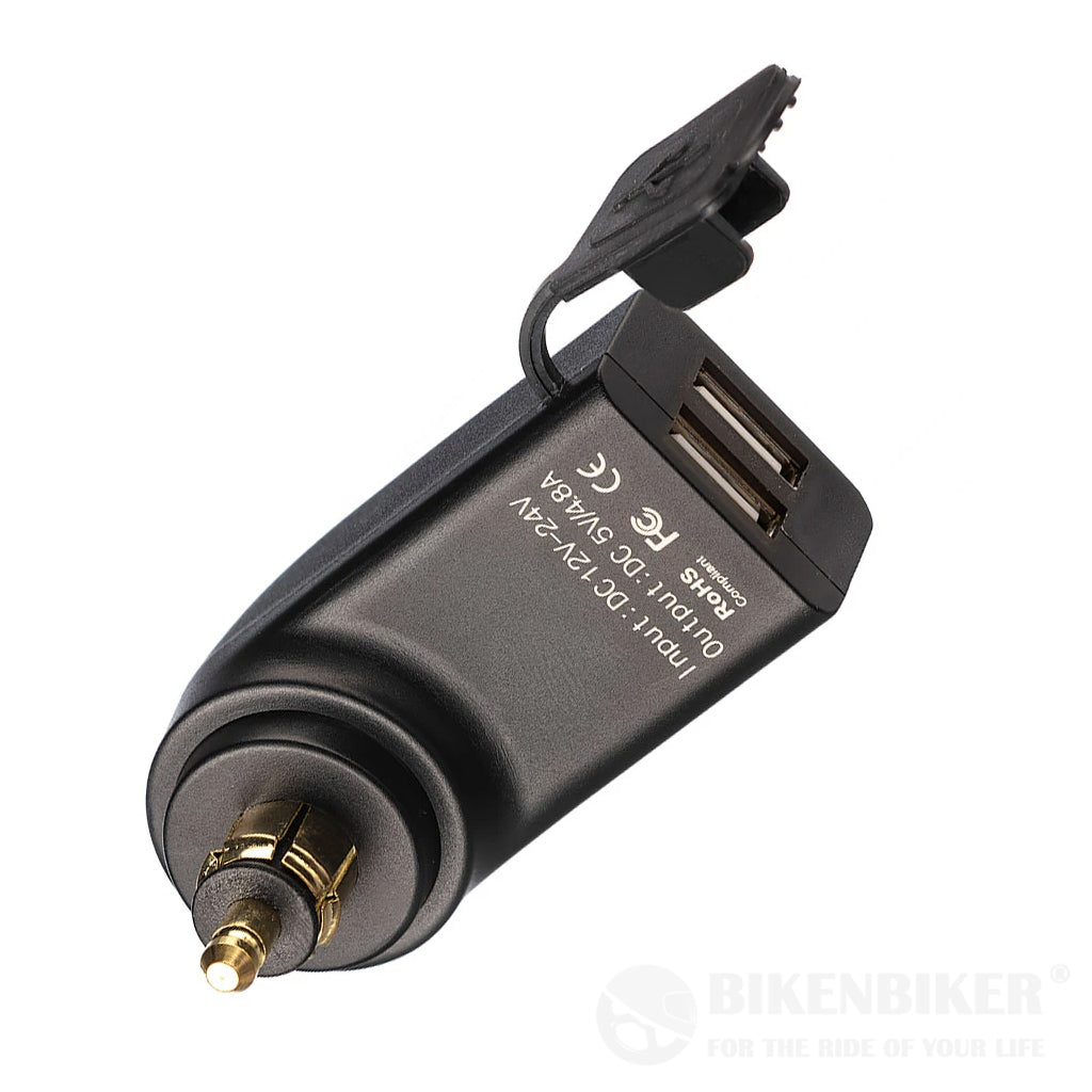 Ultimateaddons 4.8 Amp motorcycle Din Hella accessory charger with 2 USB ports is an ideal solution for charging a wide range of mobile devices. Use the power directly from your female din socket to keep gadgets charged while on the move. This adapter is simple to set up, the male DIN connector simply slots into the existing female din socket on the motorcycle (looks like a small 12v cigarette socket), then plug in your compatible USB charger cables direct to your device. There is a rubber water-resistant cap to help protect the USB ports when not in use.