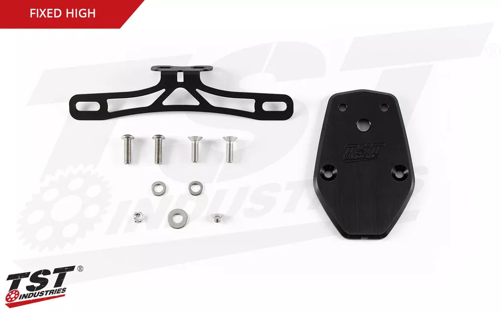Our Elite-1 Fender Eliminator system is the ultimate way of getting rid of the bulky OEM Kawasaki ZX-10R fender while cleaning up the holes left behind. With three different license plate mounting options, you’re free to customize the look of your ZX-10R with a high quality and race inspired kit that suits your bike and your style perfectly. The included ZX-10R Undertail Closeout gives your bike a finished look by fitting in perfectly with the contours of your undertail while still enabling you to route wires from the trunk to the outer tail section. This feature gives you the ability to connect signals and/or a license plate light without having to break out the drill. If you are not running any wiring, the hole is easily closed with provided stainless hardware. The fixed license plate brackets feature a proprietary lightweight design that holds your license plate in a non-adjustable position, while the adjustable kit includes a CNC machined bracket that you can customize with a wide range of adjustability. Keep in mind that the Adjustable bracket ONLY works in the "High" mounting location.