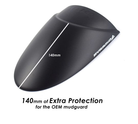 The Pyramid front mudguard extension the Extenda Fenda is one of our trademark products which we manufacture from high quality ABS. The Extenda Fenda offers a durable and long-lasting extension to your front mudguard. This product will help keep your exhaust headers and lower engine free from dirt as well as protecting your expensive radiator from stone damage. Specifically designed to follow the contour of your motorcycle's front guard our Extenda Fenda is supplied with both plastic rivets for mechanical fitment and a sheet of our specially sourced 'Stick Fit Pads' for those customers who would prefer not to drill their front mudguard. Our Extenda Fenda is simple to install and will arrive safely packaged together with comprehensive fitting instructions and all necessary fittings as detailed above.