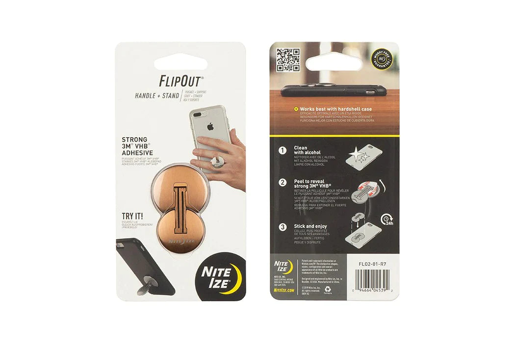This stainless steel FlipOut Handle + Stand phone handle and stand folds flat, creates a secure grip, and lets you easily view your phone hands-free in both landscape and portrait modes. The low-profile design slides into pockets without snagging, but flips out to create a convenient handle or stand. It's the little details that set this high-quality phone accessory apart from anything else on the market. With strong and secure 3M® VHB® adhesive, high-quality construction, and a design engineered to work equally as well as a stand as it does as a handle. Plus, the unique articulation of the FlipOut lets you use it flat, folded out, fully-extended, or anywhere in between.