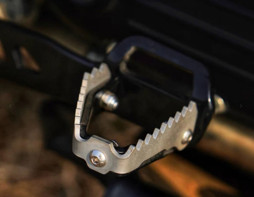 Upgrade your Royal Enfield Guerrilla 450 with Auto Engina's redesigned brake pedal. Built for touring, it offers enhanced responsiveness and comfort, with a flat-foot resting area. Crafted from a combination of mild steel and stainless steel, this brake pedal provides better control and durability, making it a premium upgrade over the stock pedal.- Durable Construction: 6mm mild steel body with 1.5mm stainless steel serrated grip for enhanced traction and durability.