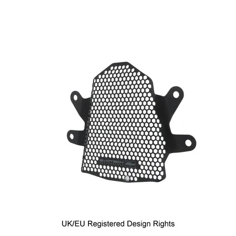 Hexagonal hole pattern to optimise airflow whilst providing maximum protection from road debris.