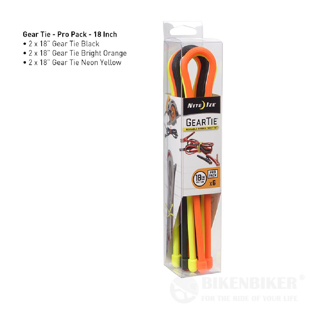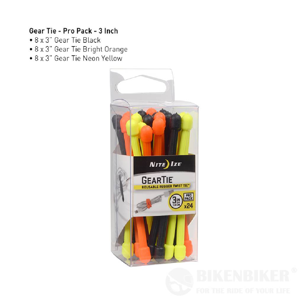 The Gear Tie ProPack makes tackling multiple wrapping, hanging, or looping jobs a breeze. With their sturdy, colorful exteriors and strong, bendable wire interiors, each Gear Tie secures, hangs, or neatens even the most unruly objects with a quick wrap-and-twist motion. Available in 3", 6", 12", 18", and 32" lengths, Gear Tie ProPacks can organize objects of nearly every size - from earbuds to garden tools - in a brilliantly simple way. Create a loop at one end, thread another Gear Tie through it, twist to close and connect multiple Gear Ties together to make custom lengths or configurations. And, because they can be configured and reconfigured hundreds of times, Gear Ties are nearly endlessly useful.
