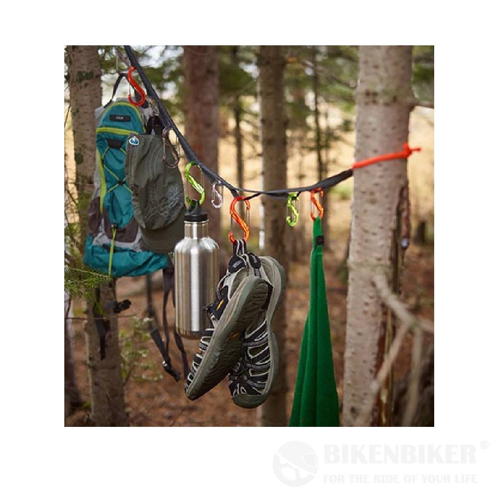 Made of high quality, wear-resistant webbing, the Gear Line Organization System features sturdy S-Biner double-gated carabiner clips in alternating sizes, each attached to its own individual sturdy loop, along with Gear Tie Reusable Twist Ties on each end. Just attach whatever tools, gear, gadgets, or clothing you want to each S-Biner and hang the Gear Line to any hook or knob - wherever it will be most convenient. Go vertical when you want to maximize storage and save wall space. Hang horizontally to keep things easily accessible at eye level or quickly dry out gear. Each S-Biner clips securely closed and unclips easily for fast, convenient attachment and detachment, and can easily be interchanged.