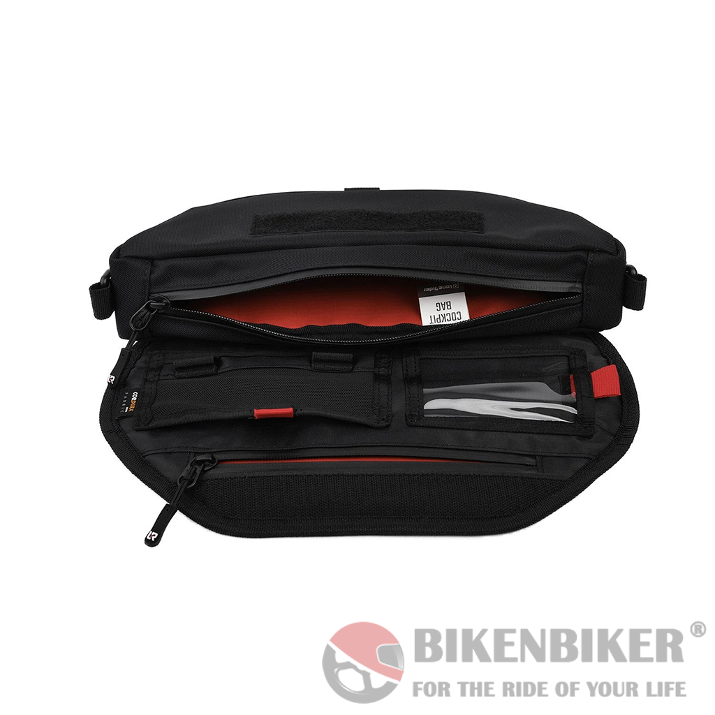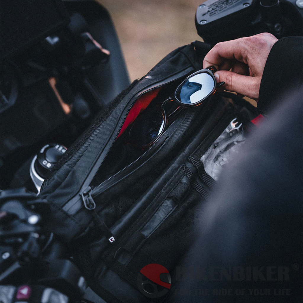 This motorcycle handlebar bag is perfect for the rider that doesn't like to use tank bags or for shorter trips when a tank bag is not a necessity.