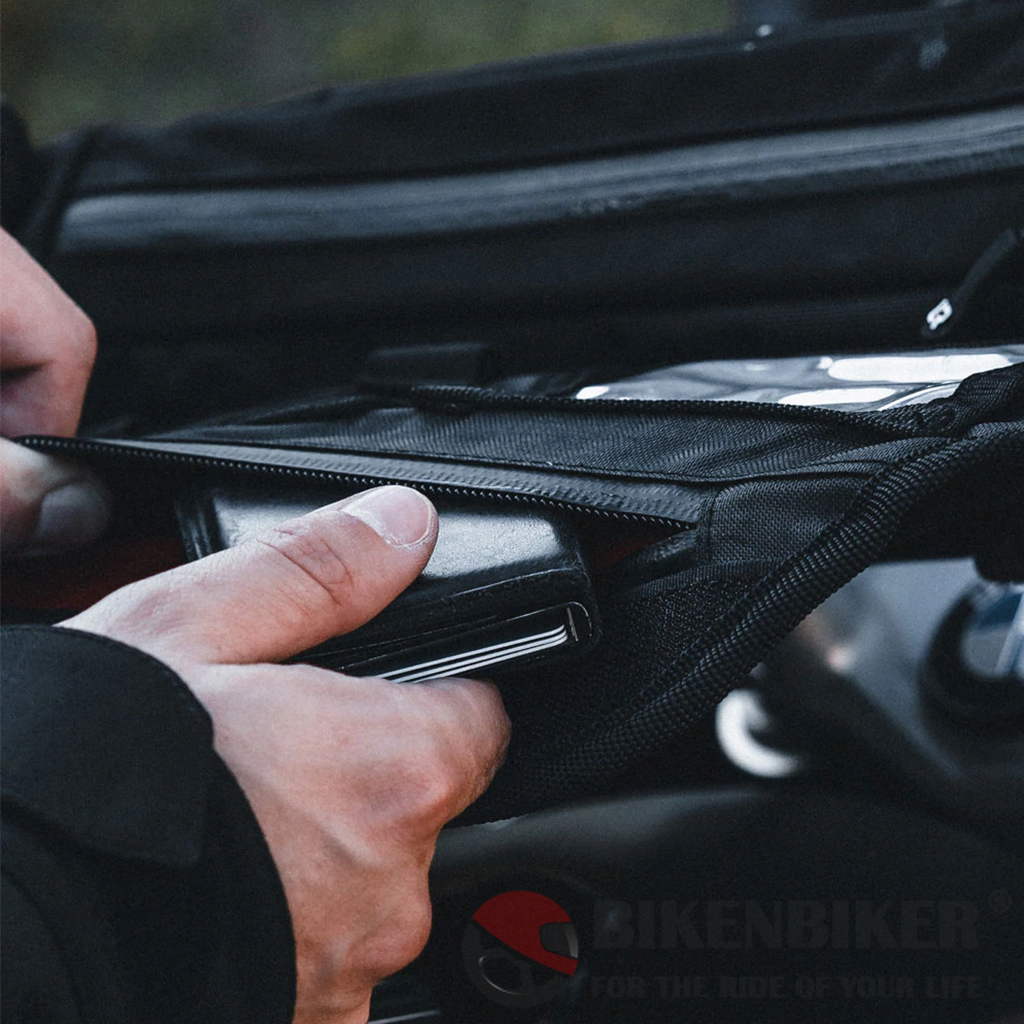 The integrated removable wallet lets you remove the cardholder lid, and pay for tolls and gas with pay wave functions, access highway tolls cards, secure garages, tap and go, or pay for anything without taking your gloves off or fumbling around for coins.