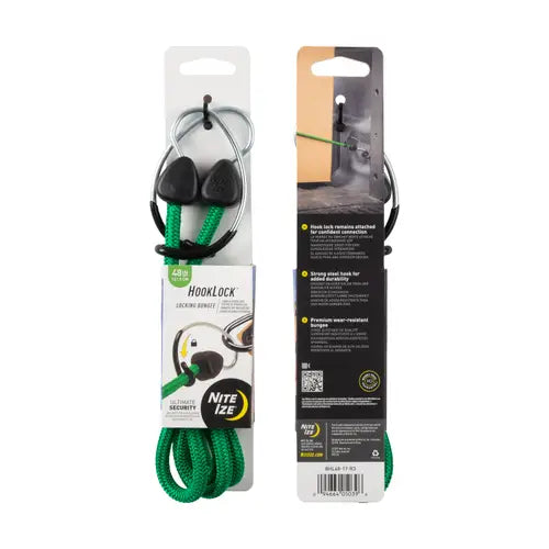 The HookLock Locking Bungee provides the strength and security you need when bundling and transporting items, featuring a locking hook on each end to achieve a confident connection whether storing firewood, keeping a lid on your trash, or hauling supplies.