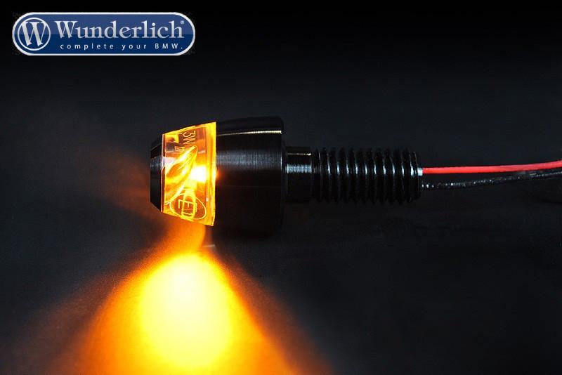 The add-on indicator has ECE approval as a front and rear direction indicator. The aluminium casing is CNC-milled and anodised black.
