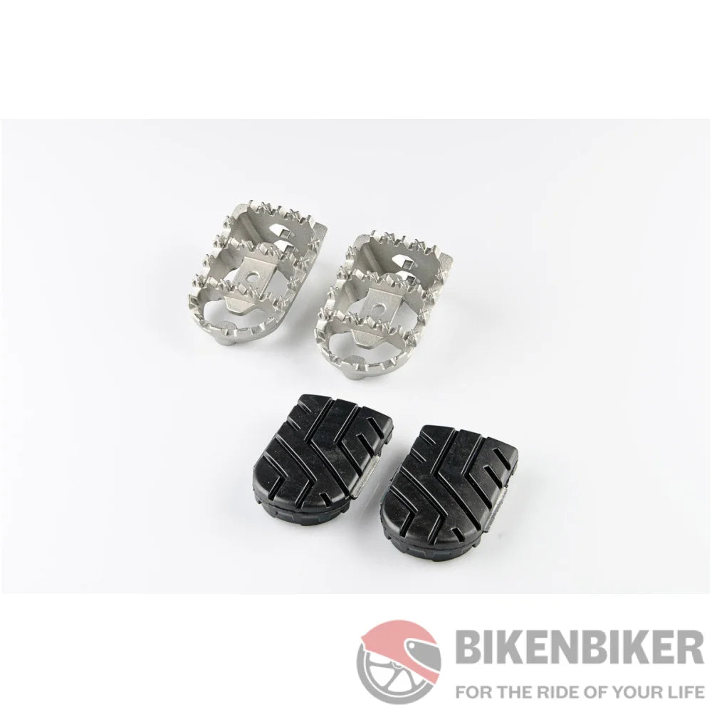 SW Motech Brings you the Footrest Kit for your BMW G 310 GS. The included footrests feature a wider surface area for your feet, giving you a more stable connection to your bike. The rubber insert in removable, and the CNC machined footrest functions as an off-road grip, giving added grip for off-road riding. The footrest is also height adjustable, allowing you to drop it by 15mm.