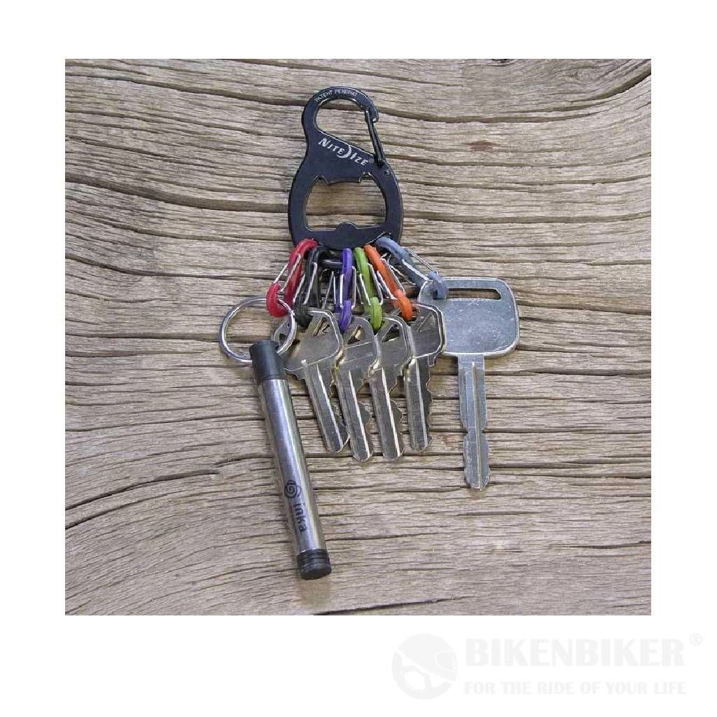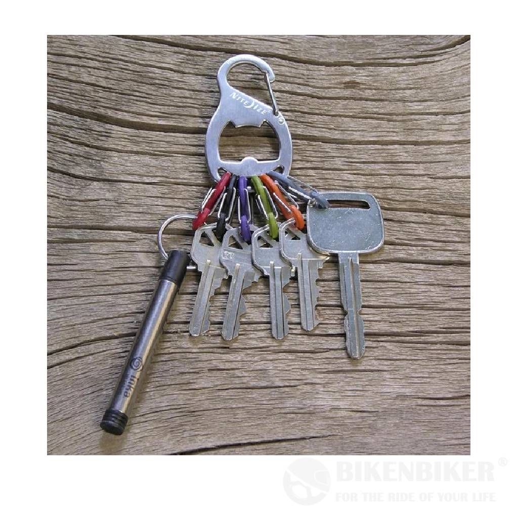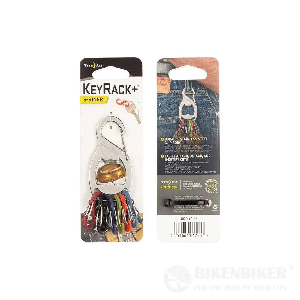 Made of high quality stainless steel, the S-Biner Key Rack + carabiner clip has a secure gate closure on one end, allowing you to clip your keys to an existing key ring, belt loop, purse strap, zipper pull-anything with a loop or D-ring. Its interior is designed to serve as a handy bottle opener, and the other end holds six different-colored plastic S-Biners, perfectly sized to hold 6 separate keys. Identify your keys by color, and attach and release them individually from the Key Rack with ease. No more fiddling with split rings or fumbling to find the key you need-the S-Biner KeyRack + is perfect for quick and easy sharing of keys with family members, leaving a key for a valet or babysitter, taking a single key when you're out on a run or ride. And, with its added feature of the bottle opener, popping open a cool beverage for you or a thirsty friend as well-anytime, anywhere.