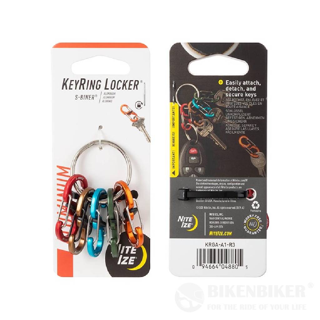 This KeyRing Locker features five lightweight aluminum S-Biner MicroLocks that connect to a large stainless steel KeyRing. Each S-Biner MicroLock® can hold up to three keys, and easily attaches and releases from the KeyRing with a simple twist to unlock and re-lock the steel gates. Featuring S-Biner MicroLocks in five assorted colors, you can easily organize and identify individual keys to prevent any mix-ups. Say goodbye to lost keys and digging your nails through split rings to pry them open—with the KeyRing Locker, your keys stay readily accessible while also being easily secured. The KeyRing Locker is perfect for quick and easy sharing of keys with family, coworkers, mechanics, valets, and babysitters, or for grabbing a single key for a quick run or ride around the block.