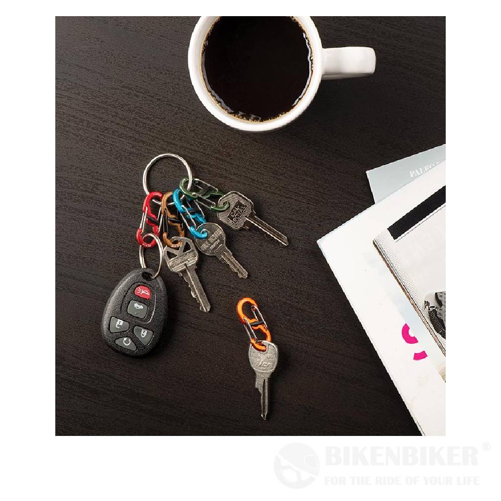 This strong stainless steel KeyRing is equipped with five lightweight aluminum S-Biner MicroLocks that secure, store, and identify your keys. Our patented twist-to-lock MicroLocks can hold up to three keys each, allowing you to add and remove keys easily.