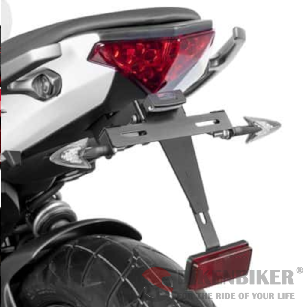 Replace the original license plate holder of your motorcycle with the Puig license plate holder. Its elevated location gives a Racing character to your motorcycle. The set combines pieces of steel finished in epoxy paint with pieces in Polyamide, achieving an important reduction of weight with respect to the original support.
