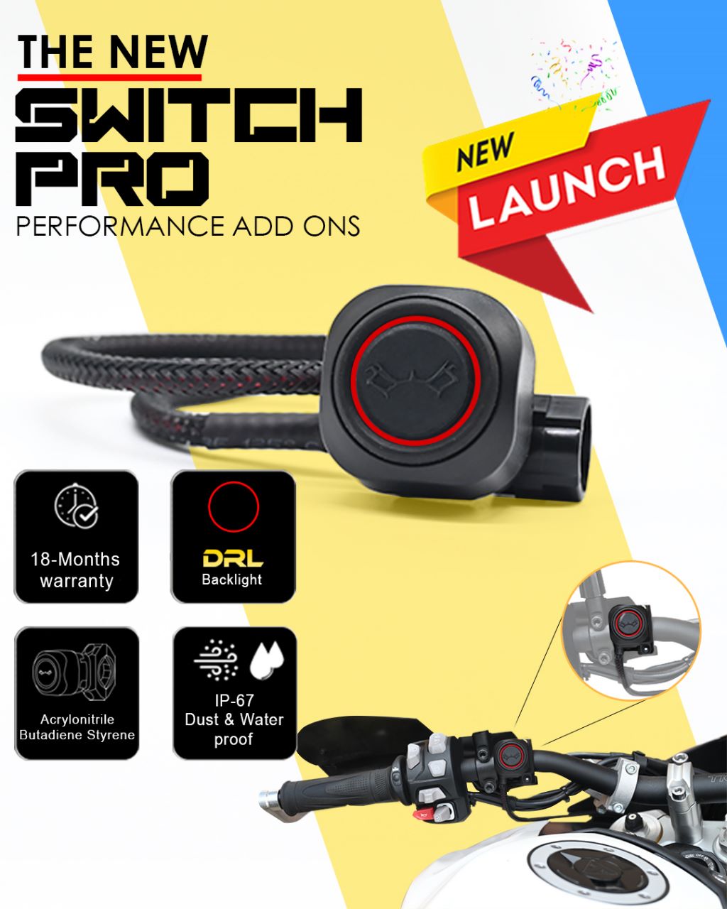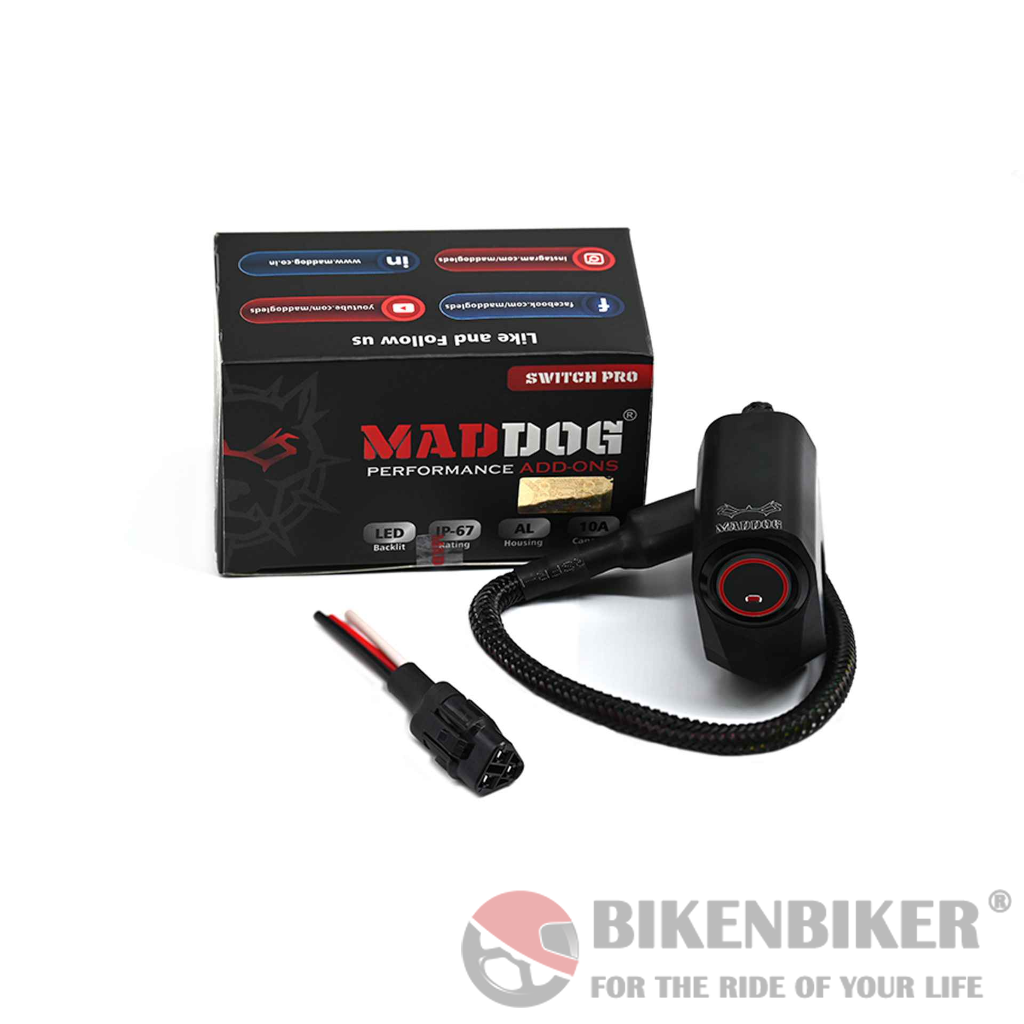 Maddog Switch Pro is a plug-play accessories for all the auxiliary and ancillary electrical equipments for motorbike . With a dual mounting option and backlight.
