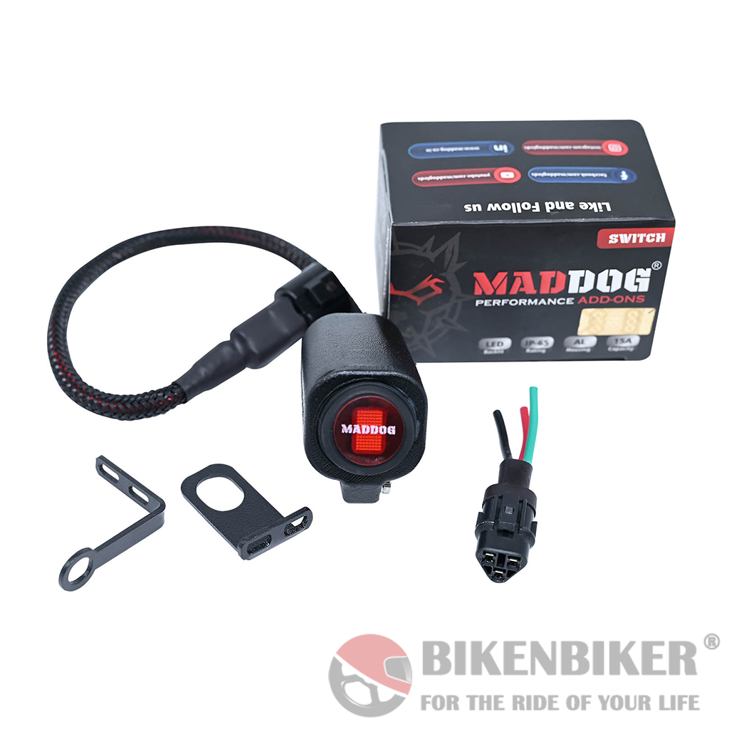Maddog Switch is a plug-play accessories for all the auxiliary and ancillary electrical equipments for motorbike . With a dual mounting option and backlight.