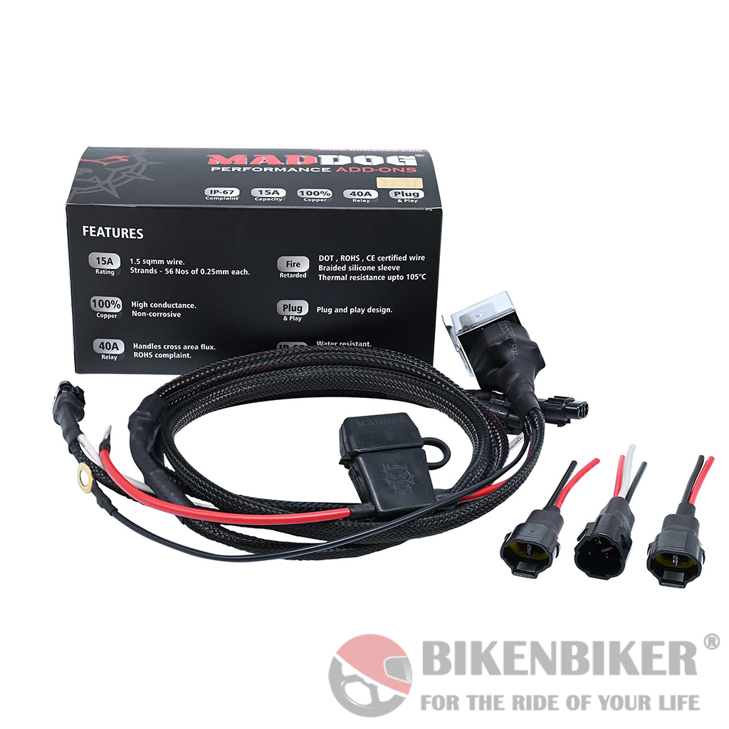 Our Standard Wiring Harness features high-quality water-resistant connectors and other components ,is designed to power ANY Auxiliary Light upto 10Amps / 100Watts .