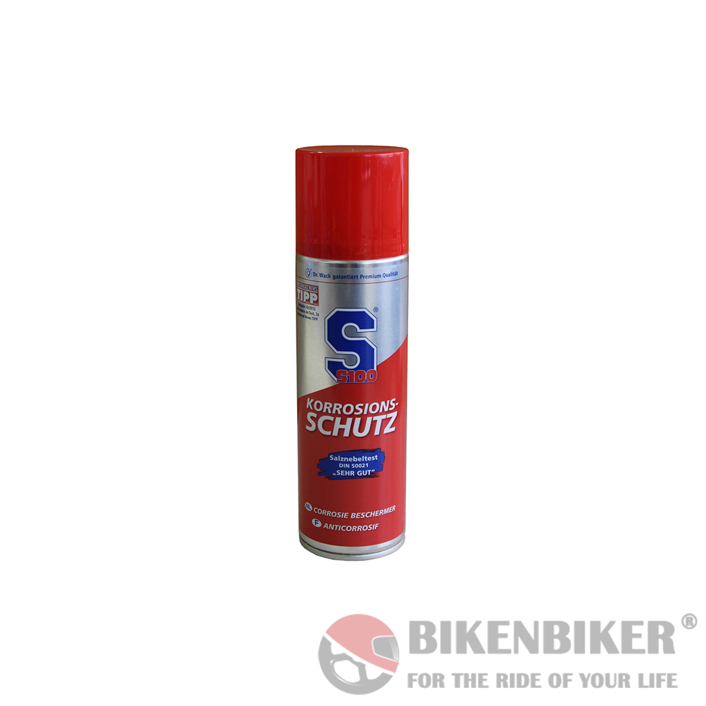 Corrosion Protectant Reliable and effective protection against corrosion- S100 Corrosion Protectant is the advancement on S100 Motorcycle Total Care. It reliably protects all metal parts against corrosion and stops existing corrosion in its tracks. With improved penetration, S100 Corrosion Protection now provides even better action in hard to reach places and in nooks and crannies.