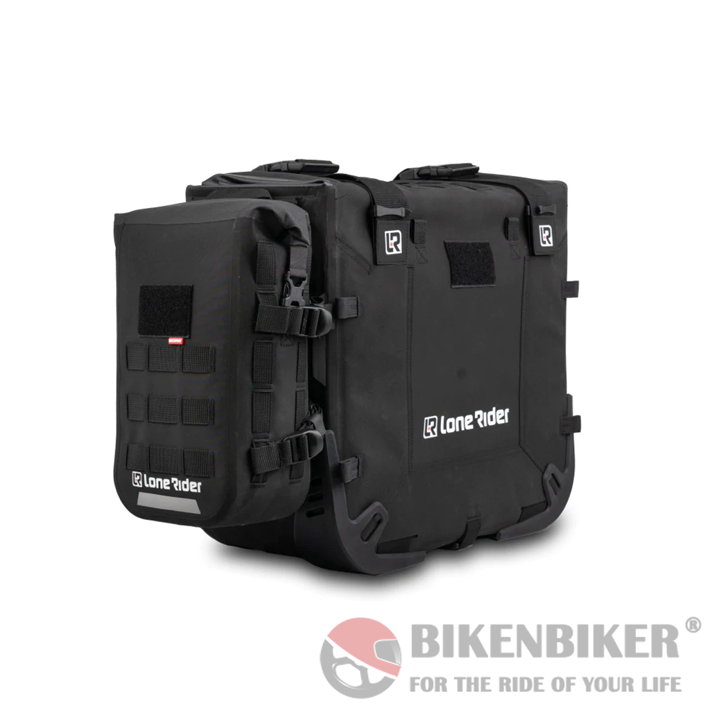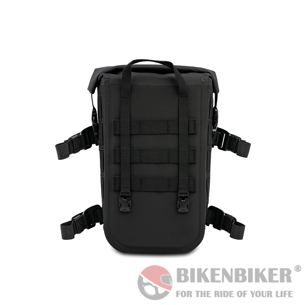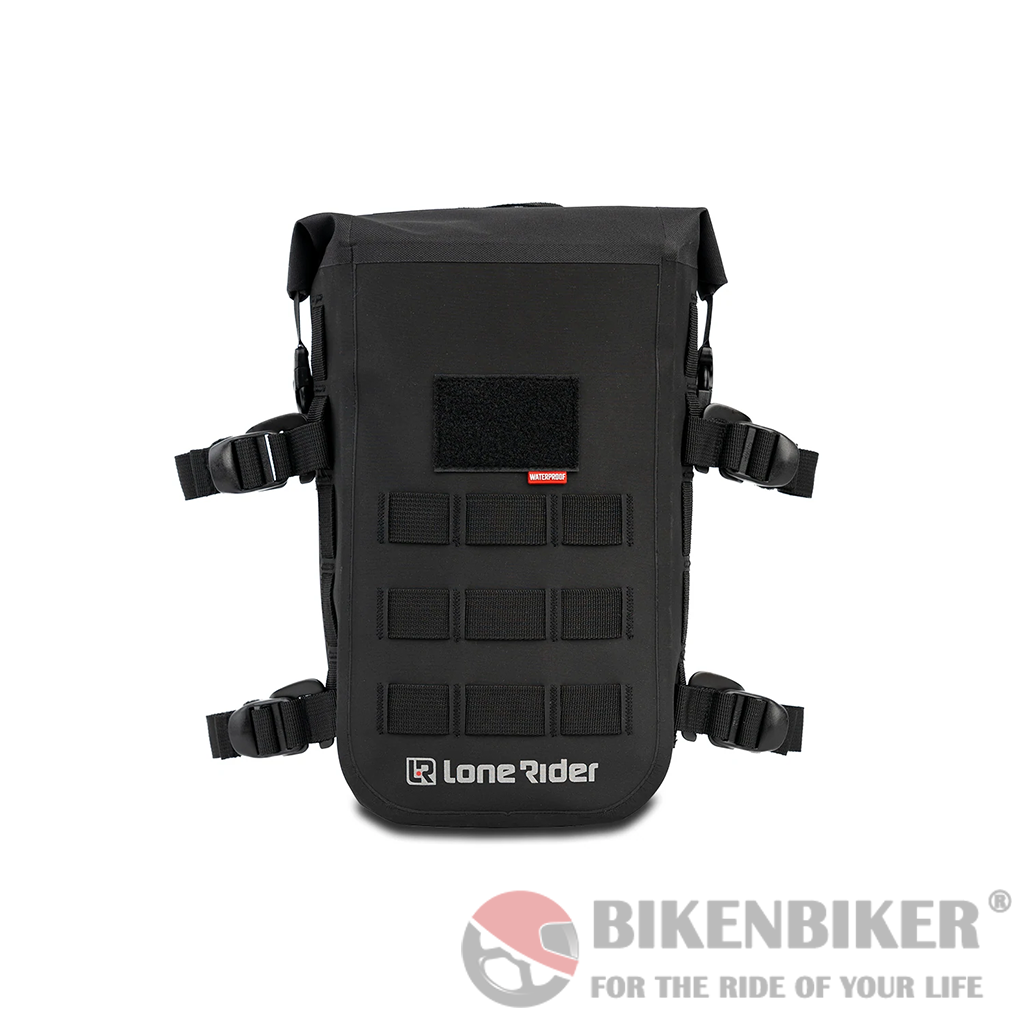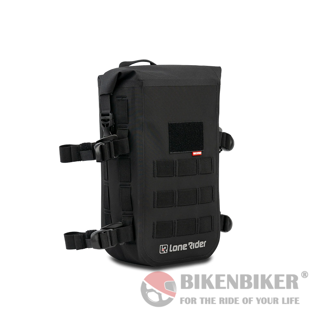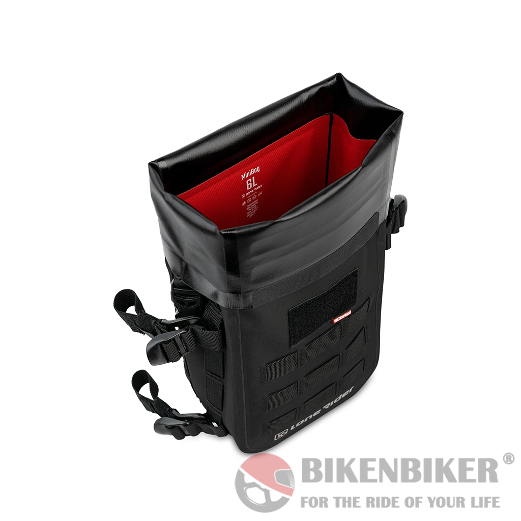 MiniBag is a 6L bag that fits onto the MotoBags and all other Lone Rider MOLLE system products. An easy waterproof solution to add extra volume and keep your gear safe. The MiniBag has 4 G-hook straps to fit to crash bars or almost anywhere.