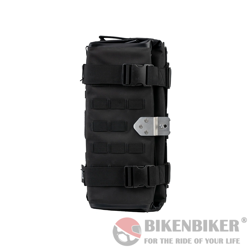 Our MotoBags are equipped with the old military attachment system on the front & back and top & bottom. Here you can attach our smaller bags (MiniBags, MicroBags, TallBags, Bottle Holders) or your own gear that is M.O.L.L.E. compatible.
