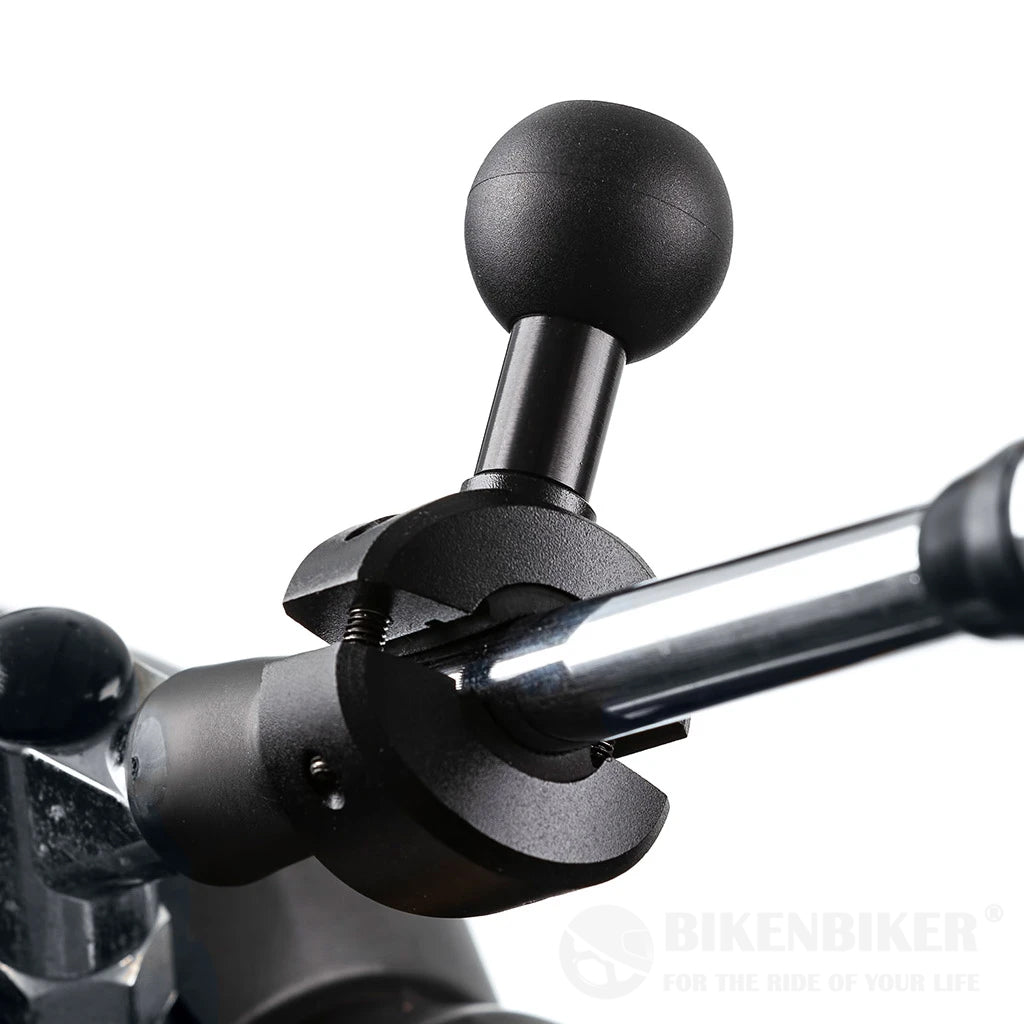 The motorcycle mirror crossbar mounting attachment is designed to fit on mirrors/crossbars / fairing bars with a diameter of 8-16mm. This attachment is designed with the 25mm / 1" ball head which can be used with a wide range of adapters. This attachments is very popular not just with motorcycles but also scooters where their handlebars are hidden with plastics/fairings.
