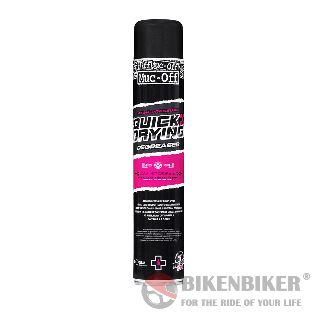 Reach those important, hard-to-hit, fiddly areas as thoroughly as possible and eliminate oil build-up, grease and grime with the Muc-Off High-Pressure Quick-Drying All-Purpose Degreaser!