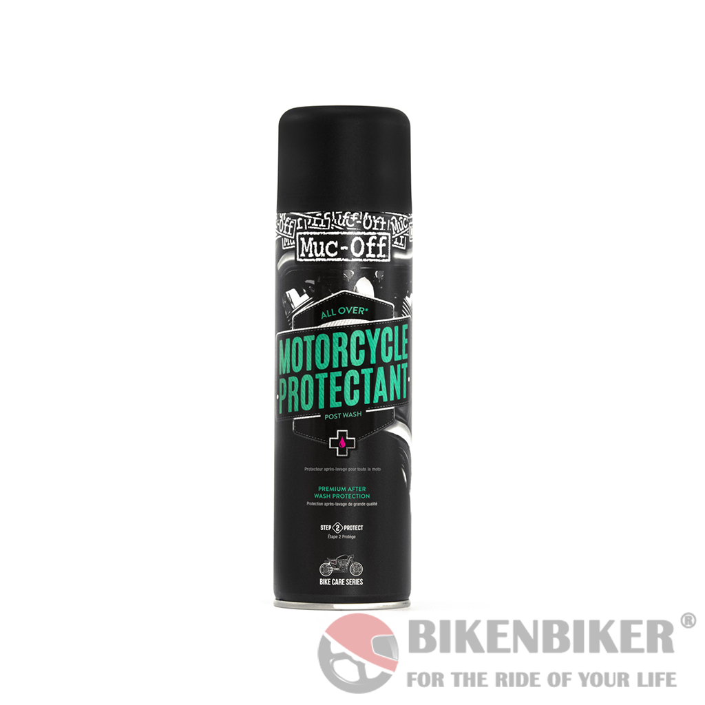 Muc-Off Motorcycle Protectant is safe to be used on the frame, chain, metal parts, plastics, rubber and of course the paintwork itself.