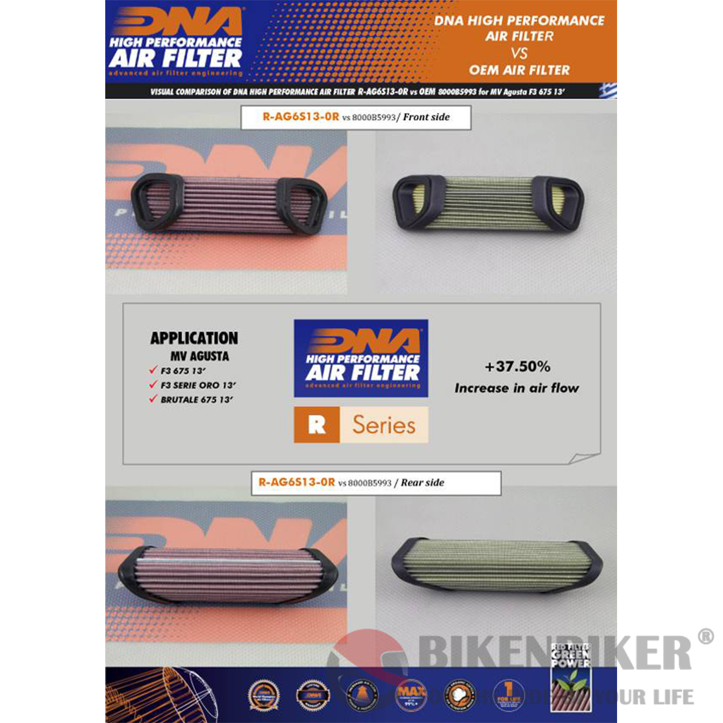 - The flow of this DNA Fcd filter is high, 37.50% more than the MV Agusta stock paper filter!