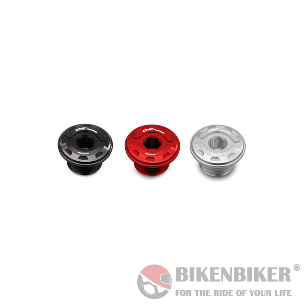 Oil filler cap machined from light alloy billet and then given an anodized surface finish. It replaces the stock plastic part, enhancing the look of the engine.